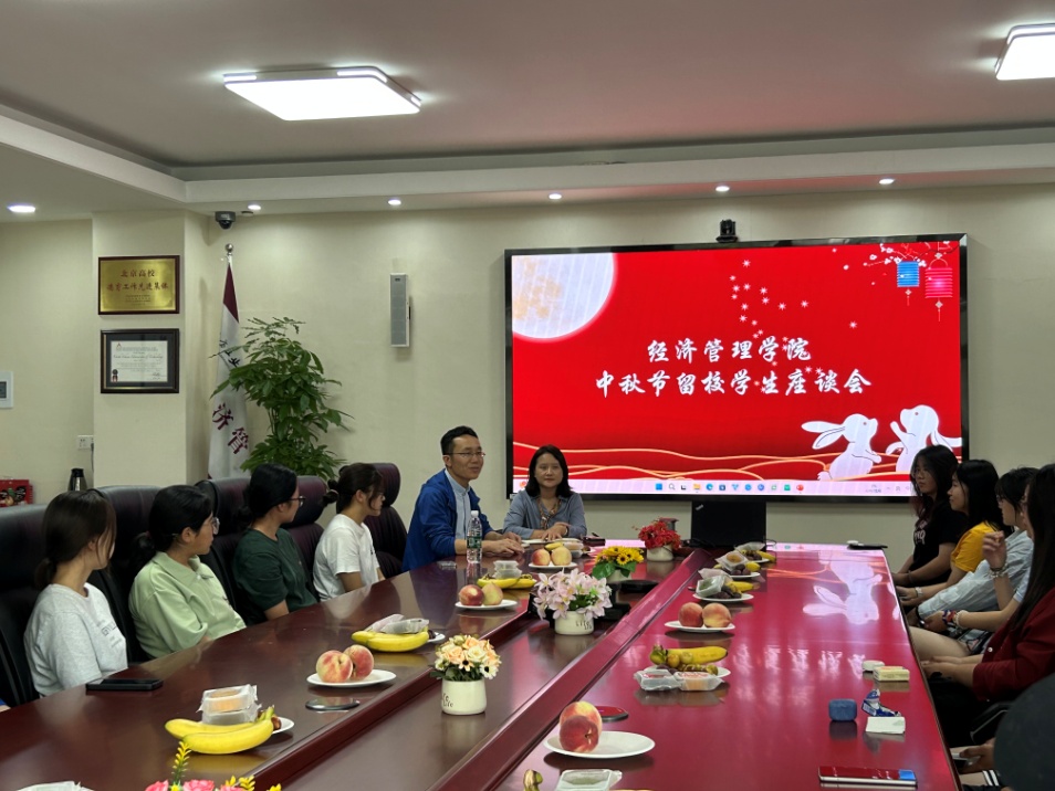 中天一轮满,秋野万里香。9月14日,KY开元集团于励学楼201召开中秋节留校学生座谈会。学院党委书记谢朝阳、党委副书记王帏、24级辅导员吴芳及20余名24级新生参加了活动。