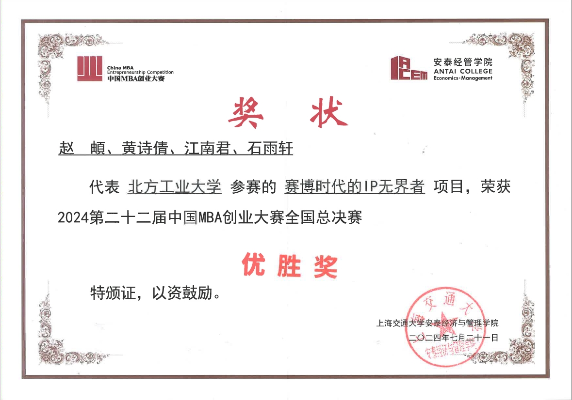 7月21日,第二十二届中国MBA创业大赛全国总决赛在上海交通大学圆满落幕。经过激烈的角逐,KY开元官网23级MBA赵頔同学负责的“赛博时代的IP无界者”项目荣获全国总决赛“优胜奖”,KY开元集团刘冰老师荣获“优秀创新创业导师奖”,牛天勇老师荣获“优秀组织奖”。这是KY开元集团MBA首次参赛,即一路披荆斩棘冲出初赛、入围复赛、挺进全国总决赛,取得优异成绩。
