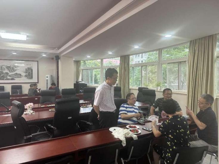 2024年7月12日中午12:00-13:30在励学楼201,KY开元集团举办工会活动——棋牌赛。比赛项目有掼蛋、双升、斗地主、中国象棋、五子棋。共有五十多名教师参加。老师们自由组合、自己制定比赛输赢规则。场面热闹,气氛热烈。当时正是酷夏暑热之时,为了给老师们解暑,工会小组还贴心的准备了葡萄、话梅等解暑的水果、小吃。