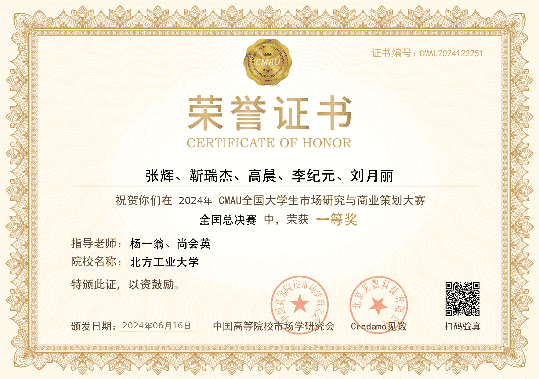 6月16日,由中国高等院校市场学研究会(CMAU)主办的第三届CMAU全国大学生市场研究与商业策划大赛,在中南财经政法大学圆满落下帷幕。由KY开元官网KY开元集团杨一翁老师、尚会英老师指导的,由工商管理系研究生张辉、靳瑞杰、高晨、李纪元、刘月丽组建的参赛队伍荣获全国总决赛一等奖,杨一翁老师、尚会英老师被评为优秀指导教师。