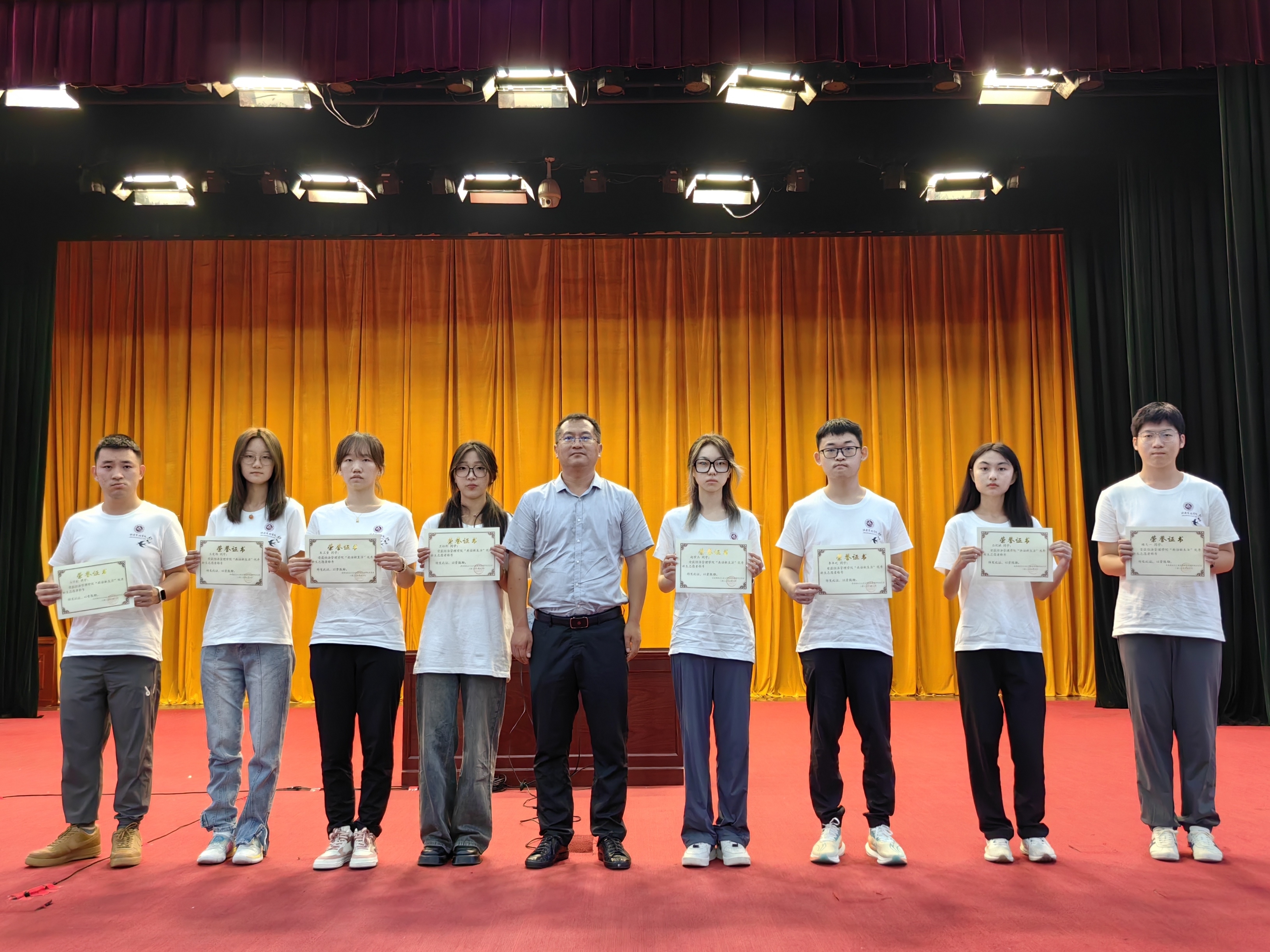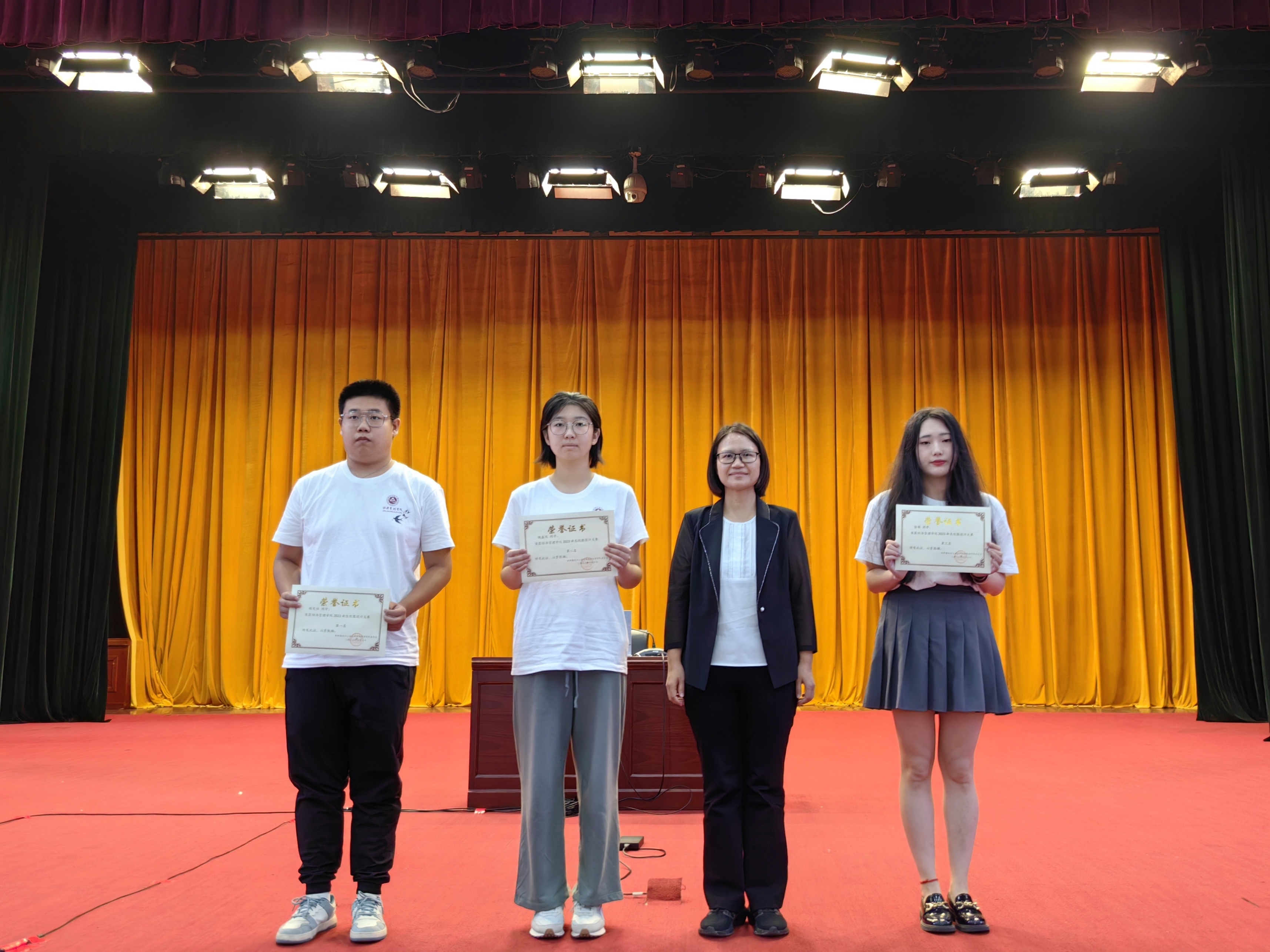随后,学院教学副院长孙强为优秀迎新志愿者颁奖,学院科研副院长蒋贵凰为新生院服设计大赛获奖同学颁奖。