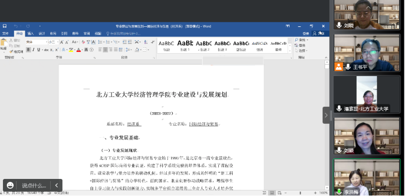 然后,潘素昆教授围绕专业招生就业、校企合作活动、师资情况、人才培养等方面,对国际经济与贸易专业近几年的发展建设进行了详细的汇报。并同时结合专业特点和实际情况,通过培养目标、课程体系构建、校际合作、实验实训条件建设、科研队伍建设等方面的国内外情况对比,提出了未来5年专业建设目标、思路、举措等维度的工作计划。
