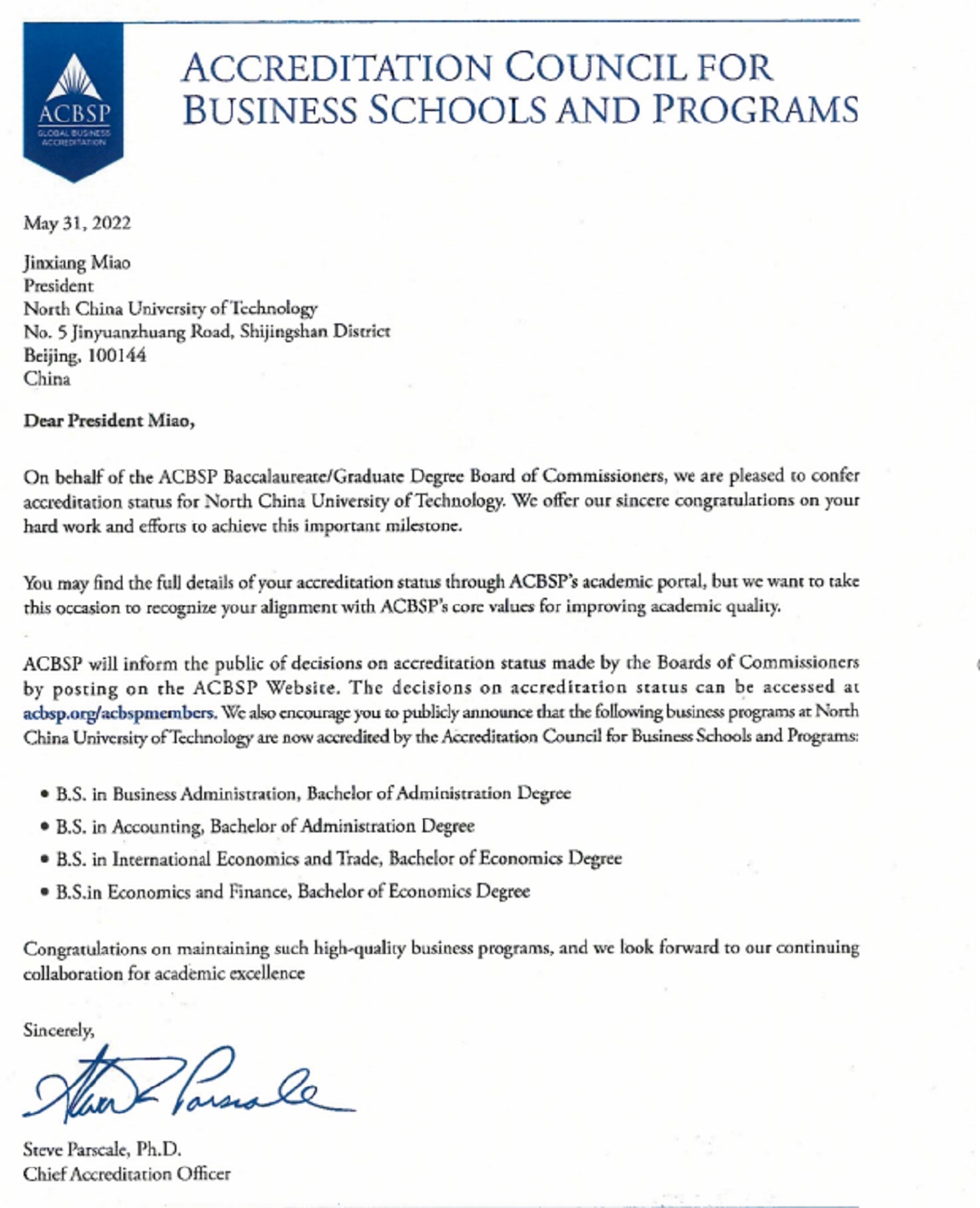 近日,学校收到ACBSP (Accreditation Council For Business Schools and Programs,美国商科认证委员会)官方认证通过通知,KY开元集团工商管理专业、会计学专业、国际经济与贸易专业、经济与金融四个专业全部顺利通过ACBSP国际商科专业认证。至此,KY开元官网拥有北京地区首家获得ACBSP国际认证的学院和专业。