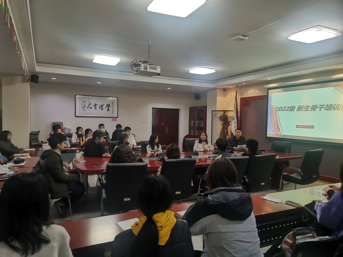 赵灯兵老师对全体22级班团干部进行专题培训。赵老师围绕班团干部定位认知、日常工作处理方式、如何更好履职尽责等方面内容与同学们展开深入细致交流,并对22级班团干部提出四点希望:一是要坚定政治意识。班长、团支书是班级的主要班委,要时刻严格要求自己,充分发挥正能量,认真落实学校、学院的各项工作要求,并且要密切关注班级同学们的思想动态。二是要发挥示范带头作用。班团干部应自觉遵守各项校规校纪,带头刻苦努力学习,冲在学院学风建设的最前面,发挥引领示范效应,带领班级同学共同进步。三是要注重班委团结。班长、团支书要互相尊重,加强沟通,强化合作,在工作中应该注意方式方法,学会解决和处理复杂问题,遇到不确定的问题要及时向班导师、辅导员沟通反馈。四是要把班级工作做到位、做深入。班长、团支书应充分掌握班里每一名同学基本情况,密切联系同学。班团干部不仅要保质保量完成学院布置的任务,还应该发挥主观能动性,为班级同学多做一些实事,切实为同学们服务。