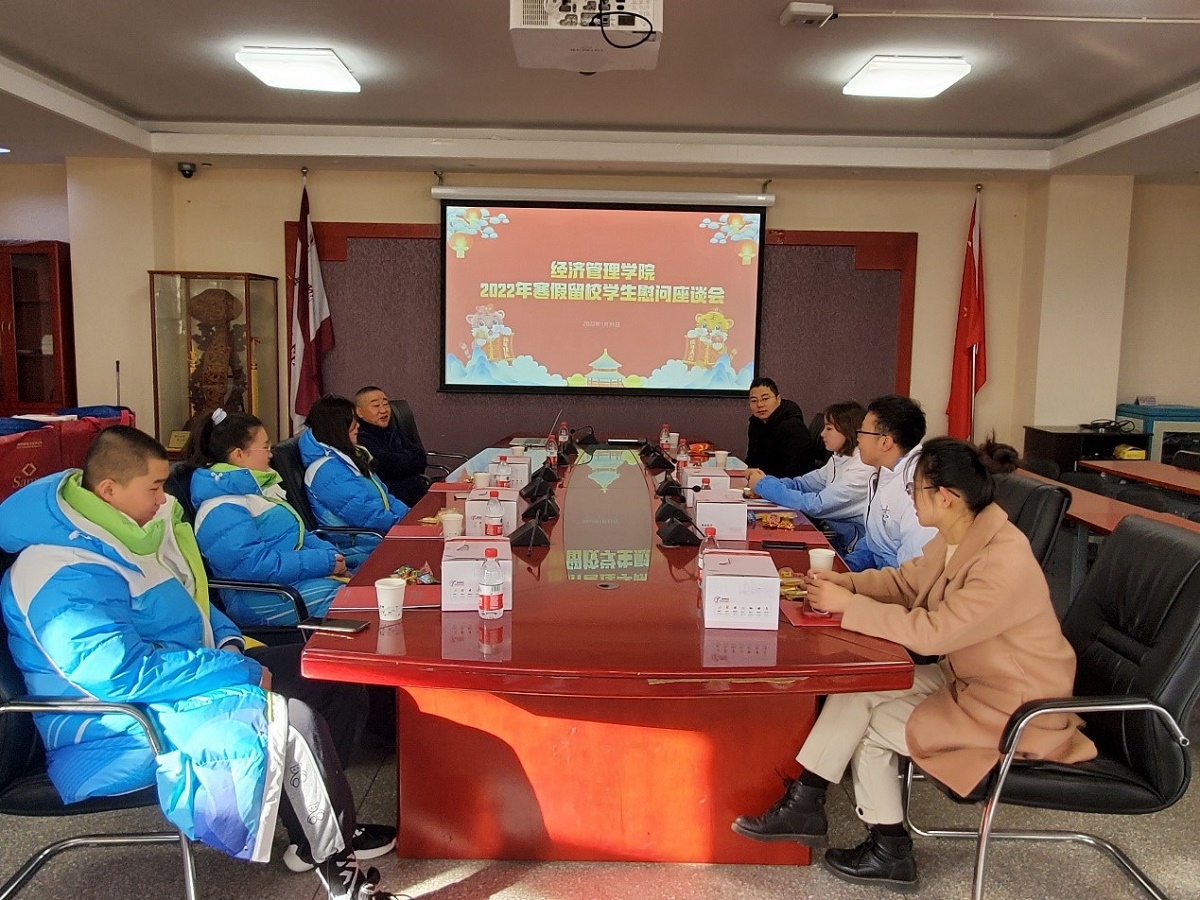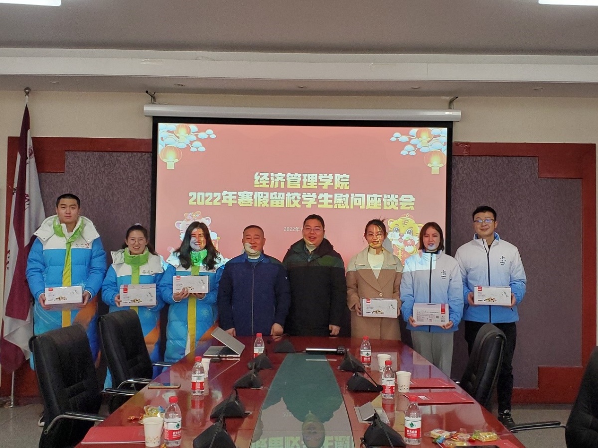 1月31日上午,在除夕之日KY开元集团在励学楼201会议室举行2022年寒假留校学生慰问活动,学院院长赵继新、党委书记王伟宾、党委副书记赵洁及留校学生参加了慰问活动。