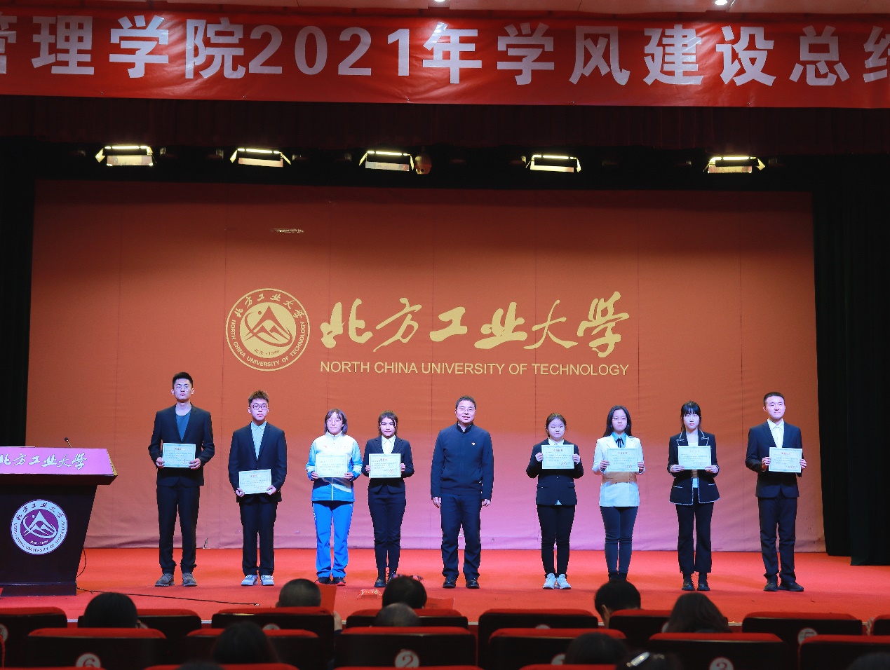 会议伊始,学院党委副书记赵洁对一年来学院学风建设工作进行总结,在肯定成绩的同时也指出了学风建设中存在的问题,为后续学风建设明确了思路和目标。随后,副院长陶晓波代表学院宣读了课程思政优秀团队、课程思政优秀教师、就业工作先进个人、就业优秀指导教师、学风建设先进集体和个人、社会实践和志愿服务先进集体和个人的表彰决定,与会领导依次为获奖代表颁发了证书。