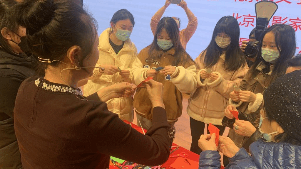 在观看电影之前,进行了“剪雪花 迎冬奥”非遗剪纸互动体验活动。剪纸老师讲解生动细致,将冬奥元素融入剪纸艺术中,在传播冬奥精神的同时,体会剪纸艺术蕴含的丰富文化信息,领悟剪纸艺术的魅力。