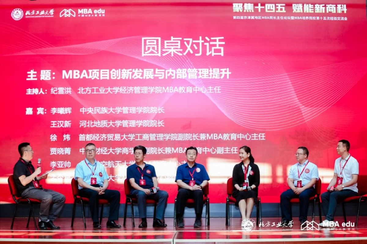 时代的发展在不断变化,对于人才的需求也提出了新的要求。针对商学院建设与人才培养,商学院一直在做积极探索与实践。在圆桌对话环节,中央民族大学管理学院院长李曦辉、河北地质大学管理学院院长王汉新、中央财经大学商学院副院长兼MBA中心副主任贾晓菁、首都经济贸易大学工商管理学院副院长兼MBA中心主任徐炜、北京航空航天大学MBA教育中心主任李亚帅、中国政法大学MBA教育中心招生部主任孟令星作为发言嘉宾围绕《MBA项目创新发展与内部管理提升》主题展开交流与讨论。圆桌对话由KY开元集团MBA教育中心主任纪雪洪主持。