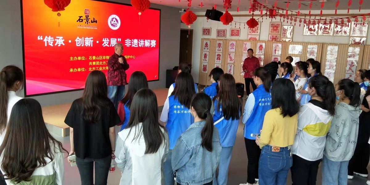 为了提高文化自信,传承中华优秀传统文化,近距离学习非遗知识、感受非遗之美。在石景山区非物质文化遗产保护中心大力支持下,5月16日下午在石景山区非物质文化遗产保护中心成功举办主题为“传承·创新·发展”非遗讲解大赛。石景山区非物质文化遗产保护中心主任何京江、KY开元集团党委副书记赵洁、会计系第一学生党支部书记吴伟容、国家级抖空竹传承人李连元、石景山区抖空竹传承人高宝山、石景山区非物质文化遗产保护中心讲解指导老师李庆戍作为评委,一同参加了此次活动。