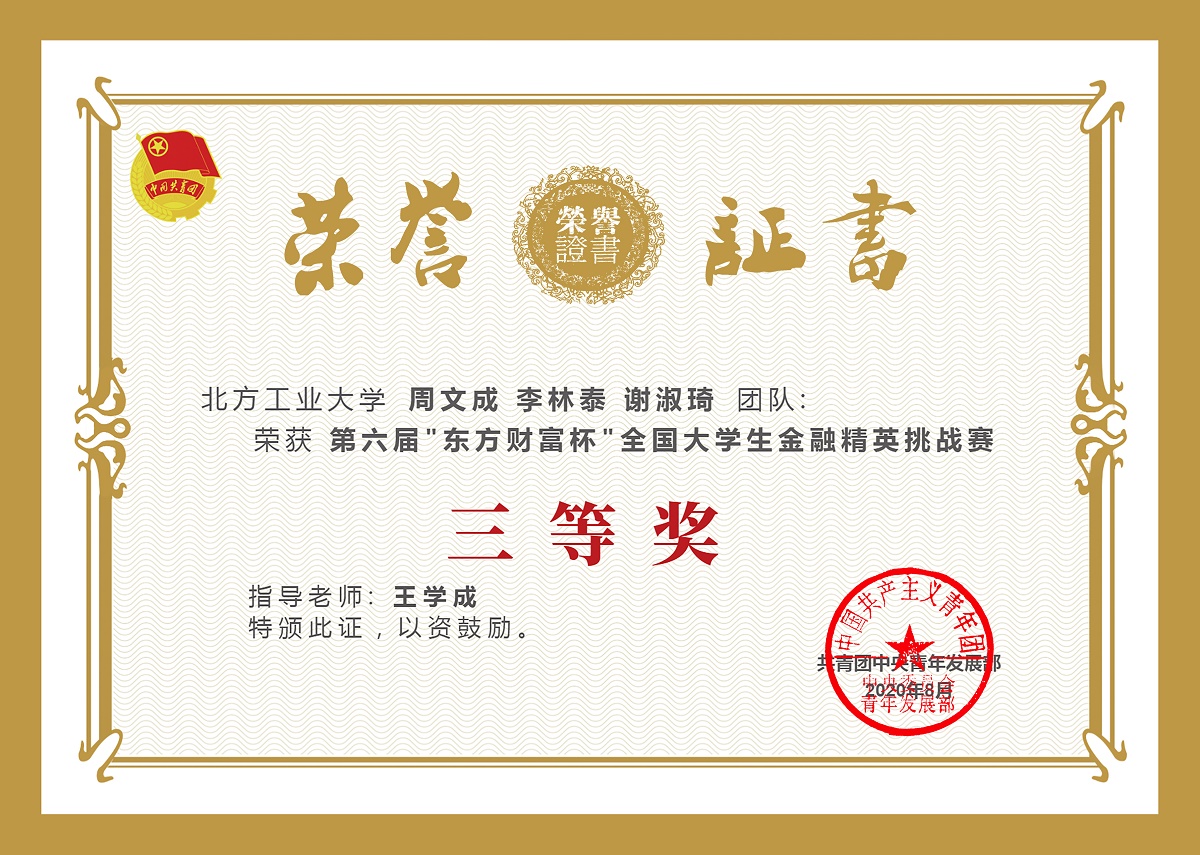 由共青团中央青年发展部主办,东方财富信息股份有限公司、全国学校共青团研究中心承办的第六届“东方财富杯”全国大学生金融精英挑战赛圆满结束。KY开元官网KY开元集团经济系张蜀林老师、王学成老师、王丽娜老师作为指导教师,组织并指导学生参加了本届大赛,最终有3支团队获得全国二等奖,1支团队获得全国三等奖。