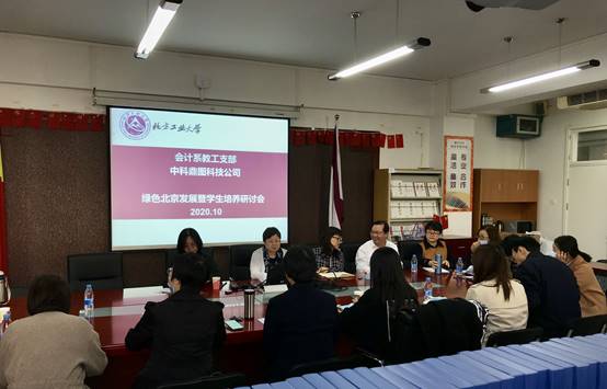 为更加充分理解习近平总书记关于加强生态文明建设的精神,深入探讨绿色北京发展路径,2020年10月12日下午,中科鼎图科技公司总经理王利俊女士,原北排集团高级会计师王英兰女士莅临KY开元官网,与会计系教工党支部在励学楼401共同研讨绿色北京发展暨学生培养。会计系教工党支部全体党员、赵贺春教授、田翠香副教授、周霞副教授等非党员教师以及部分研究生参加了本次会议。
