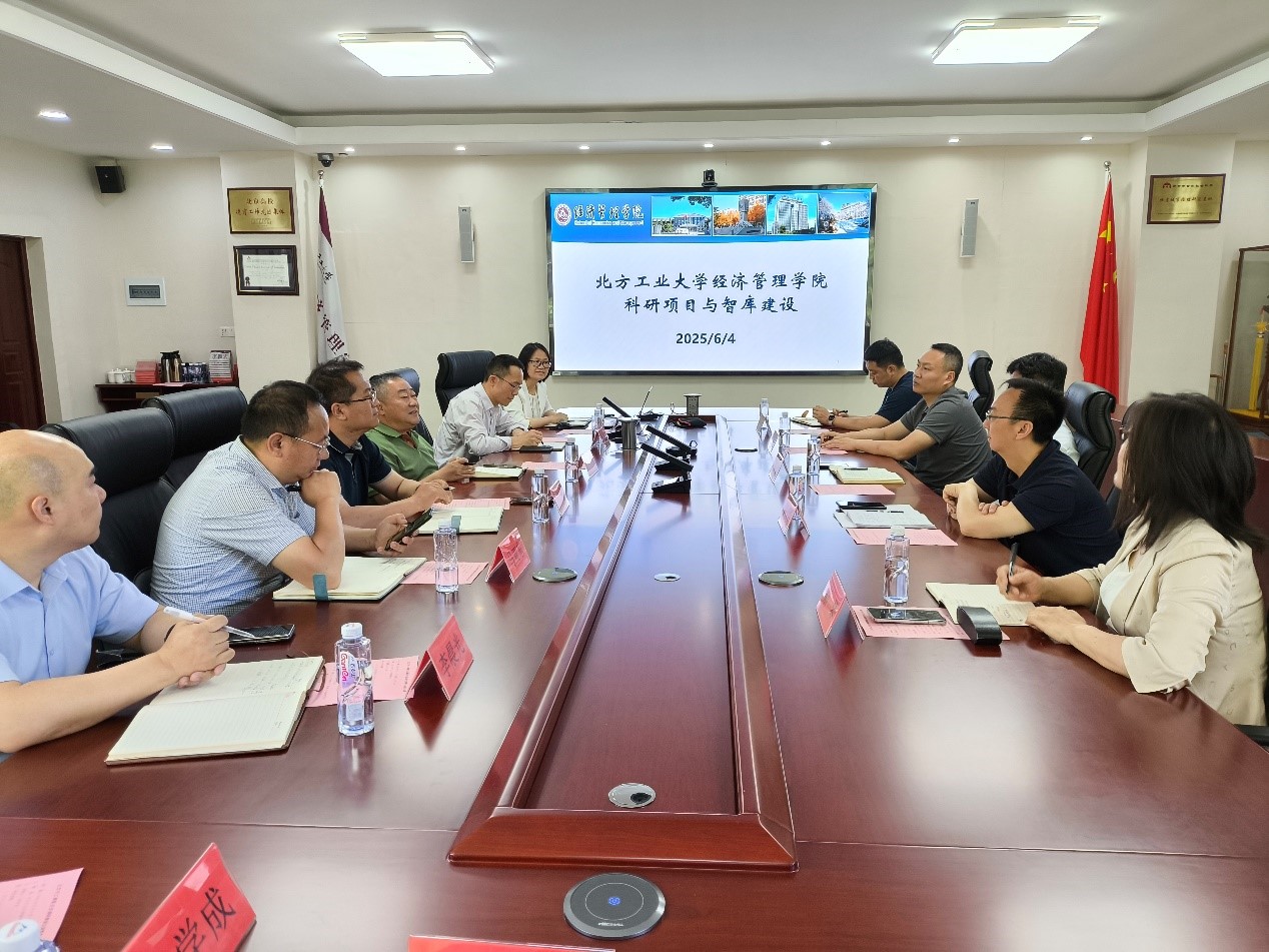 蒋贵凰副院长首先介绍了学院基本情况、承担的科研项目、形成的科研特色和智库建设情况。赵继新院长对李振坤副主席一行的到访表示欢迎,对北京市工商联与学院的合作寄予厚望,提出除基本智库合作外,还可借助工商联的桥梁纽带作用,挖掘会员企业需求,在素质培训提升、企业决策咨询等方面拓展合作广度。谢朝阳书记和孙强副院长围绕提升教师参与智库工作的积极性和未来双方合作的深入开展提出了建设性建议。