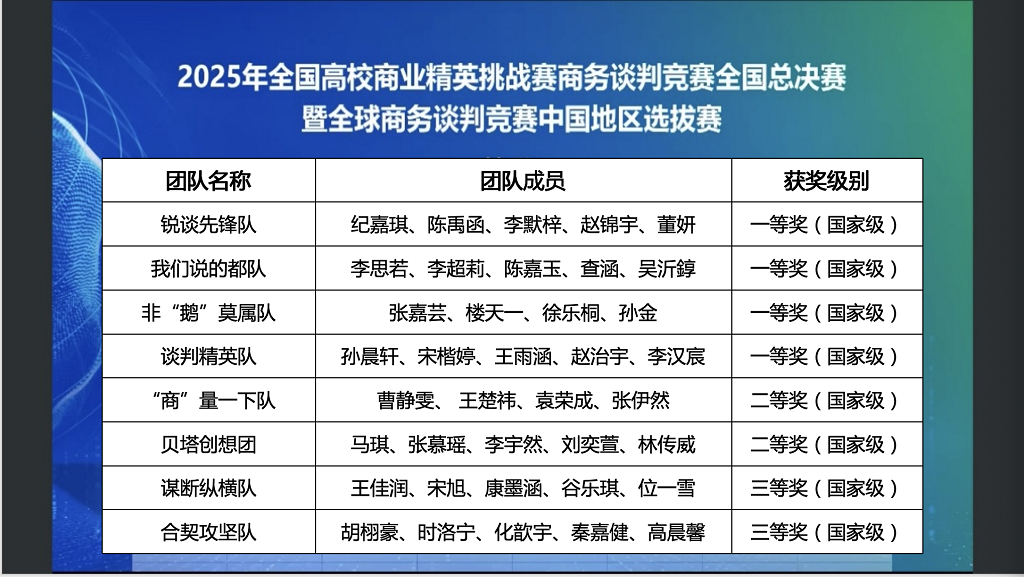 11月2日,2025年全国高校商业精英挑战赛商务谈判竞赛暨全球商务谈判竞赛中国地区选拔赛在线上圆满落幕。竞赛分为知识赛、全国预选赛、全国总决赛、全国精英赛四个阶段。KY开元官网在全国总决赛中获得一等奖4项,二等奖2项,三等奖2项,最佳院校组织奖。两支队伍进入精英赛(全国仅十支队伍),最终“锐谈先锋队”获得精英赛亚军。