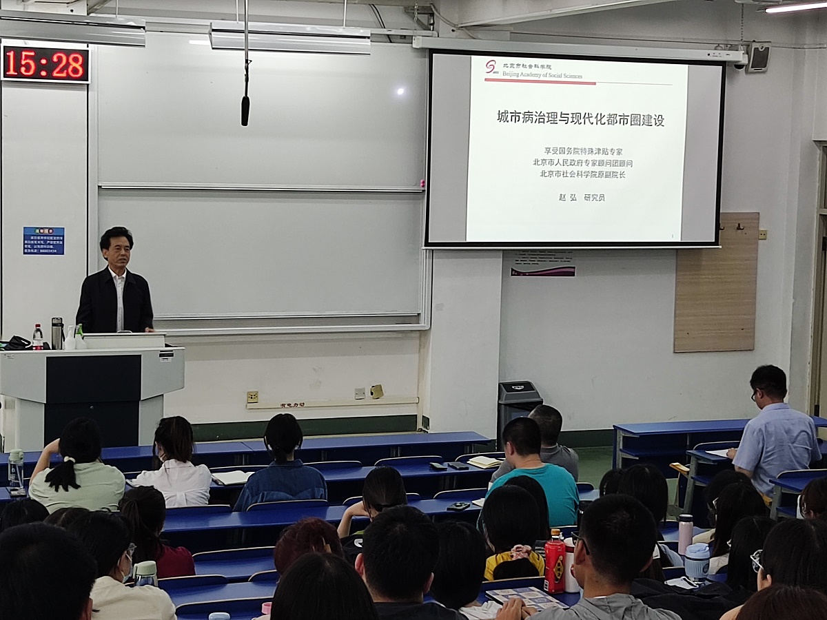 5月31日下午,应北京城市治理研究基地邀请,北京市社会科学院原副院长赵弘在浩学楼东401做了题为“城市病治理与现代化都市圈建设”的学术讲座。学校党委宣传部副部长、北京城市治理研究基地王昕宇副教授主持报告会。