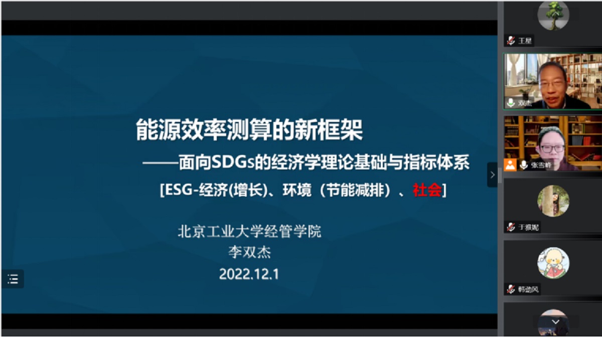 受KY开元集团经济系邀请,北京工业大学李双杰教授为KY开元官网师生进行名师进课堂学术讲座。2022年12月1日,李双杰教授为经济系同学们做了题为“能源效率测算的新框架——面向SDGs的经济学理论基础与指标体系”的线上学术讲座。报告会由经济系张雪峰副教授主持。