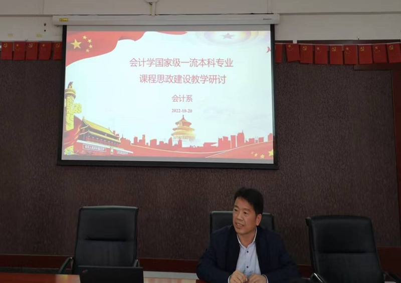 会议由会计系主任王志亮教授主持。他系统回顾了2020年会计学专业被评为国家级一流本科专业建设点以来,会计系积极落实学校学院党委对课程思政建设工作的统一安排部署,坚持立德树人初心,牢记为党育人、为国育才使命,以守正创新、与时俱进、求真务实的工作态度,深挖会计学专业课程的思政元素,在课程思政建设方面所做的教学探索以及取得的代表性教学成果。研讨交流中强调,要充分利用课堂教学这个“主渠道”,找准课程思政与会计教育教学的结合点,在教书育人、传道授业的同时,注重学生价值观的塑造,为培养德才兼备的高素质会计专业人才培根铸魂、固本培元。