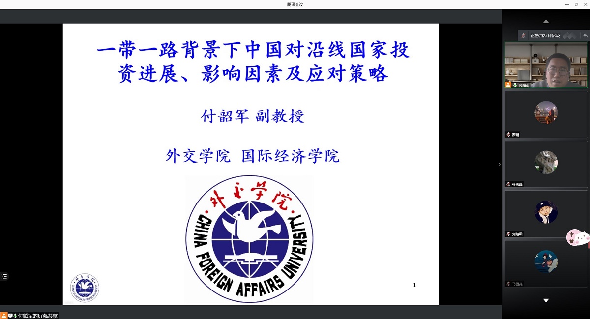 4月22日下午,应KY开元集团邀请,外交学院国际经济学院副教授、中国人民大学六西格玛管理研究中心研究员付韶军通过腾讯会议APP为KY开元官网师生作了题为“一带一路背景下中国对沿线国家投资进展、影响因素及应对策略”的线上学术报告。报告会由经济系张雪峰副教授主持,经济系经济研研究生与本科生参会。