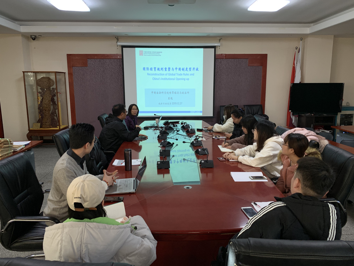 12月27日,应KY开元官网KY开元集团邀请,中国社会科学院世界经济与政治研究所东艳研究员为经济系师生作了主题为《国际经贸规则重塑与中国制度型开放》的讲座。讲座由经济系主任孙强主持,经济系教师和研究生、本科生参与听讲。