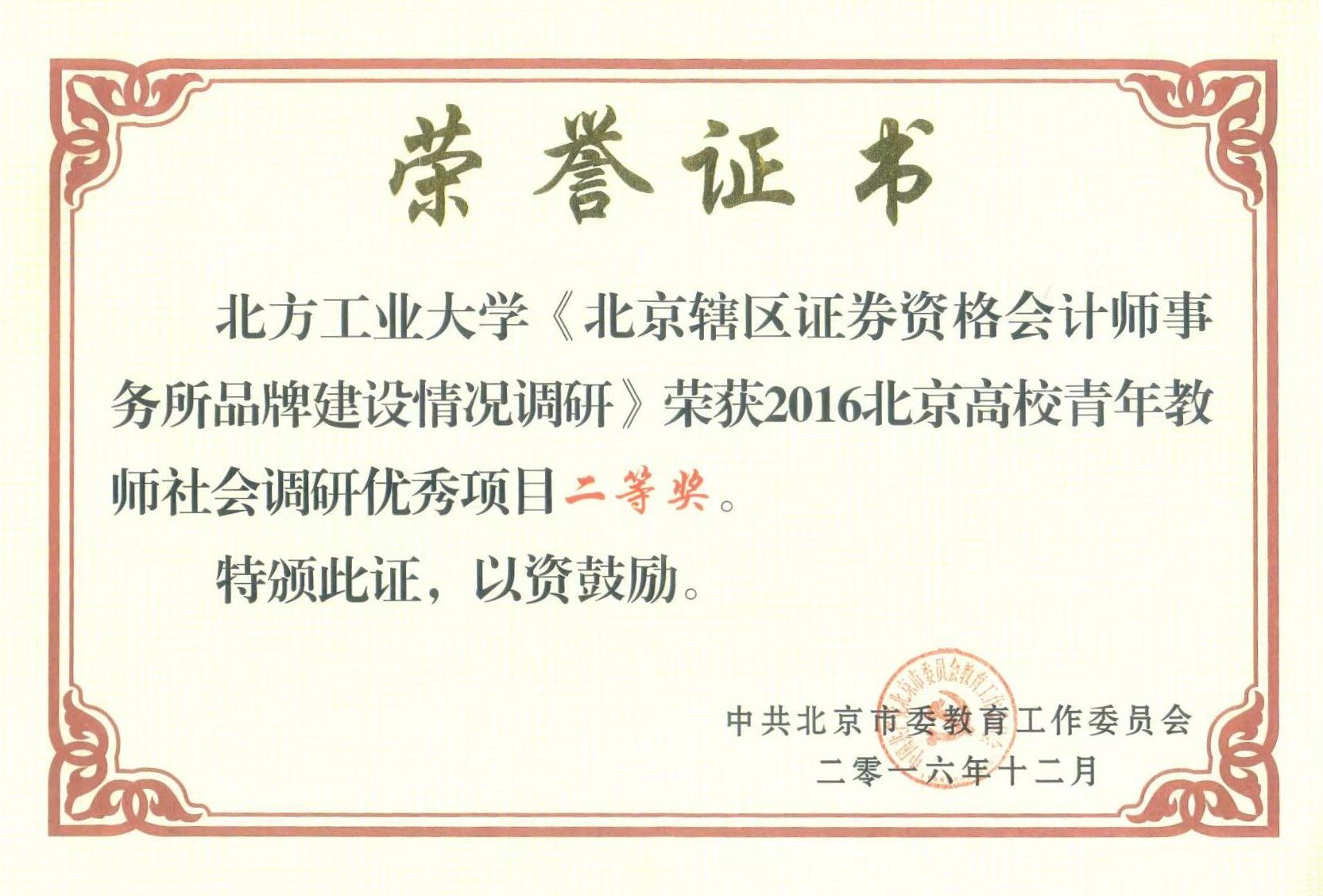 2012年,会计系一项教改课题获得KY开元集团高等教育教学成果特等奖,北京市教育教学成果二等奖。