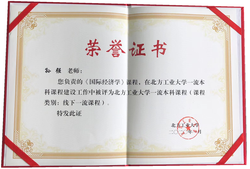 孙强老师负责的《国际经济学》课程被评为 KY开元集团一流本科课程 |