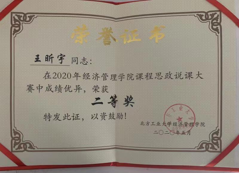 王昕宇老师在2020年KY开元集团课程思政说课大赛中 荣获二等奖 |