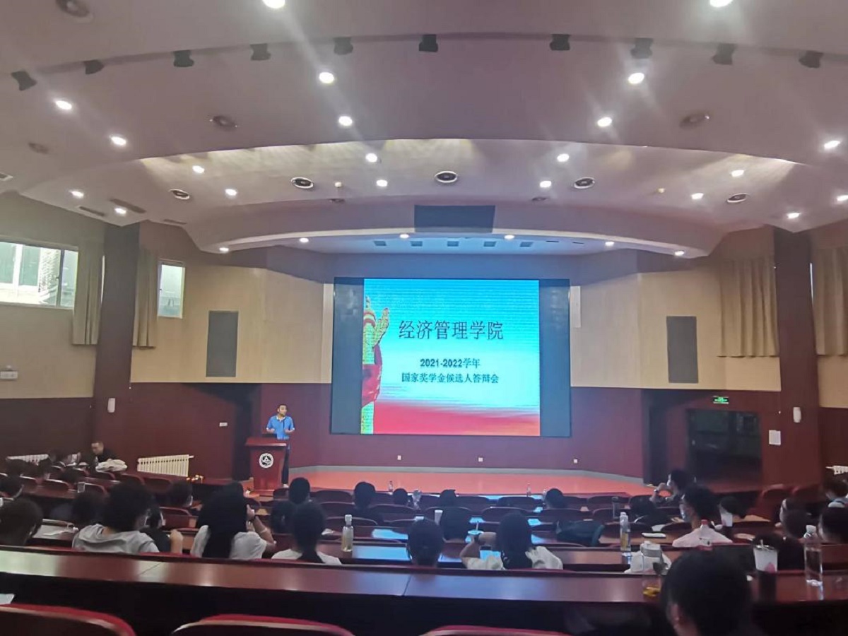 学院本科生国奖候选人逐一发言,他们分别围绕思想建设、专业学习情况、个人成绩、专业竞赛、科研成果、社会实践、学生工作等在校期间的综合表现,向大家进行汇报展示。国奖候选人同学以凝练的语言、扎实的素材展现了新时代经管学子不忘初心、励志奋斗、追求卓越的生动实践。现场展示精彩纷呈,气氛活跃热烈,现场新生备受感染。与会老师对国奖候选人的精彩展示给予充分肯定,并号召22级新生努力向优秀的学长学姐看齐,脚踏实地努力学习,让自己的大学四年生活精彩、充实、卓越。