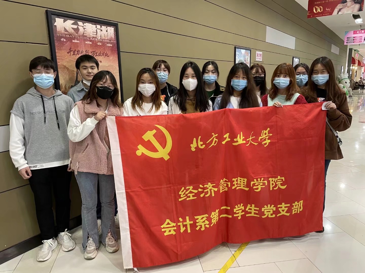 在中国共产党建党100周年之际,为进一步加强学生党员的爱国主义教育,厚植爱国主义情怀,增强民族自信心和自豪感。10月14日下午,会计系第二学生党支部组织全体学生党员观看电影《长津湖》。