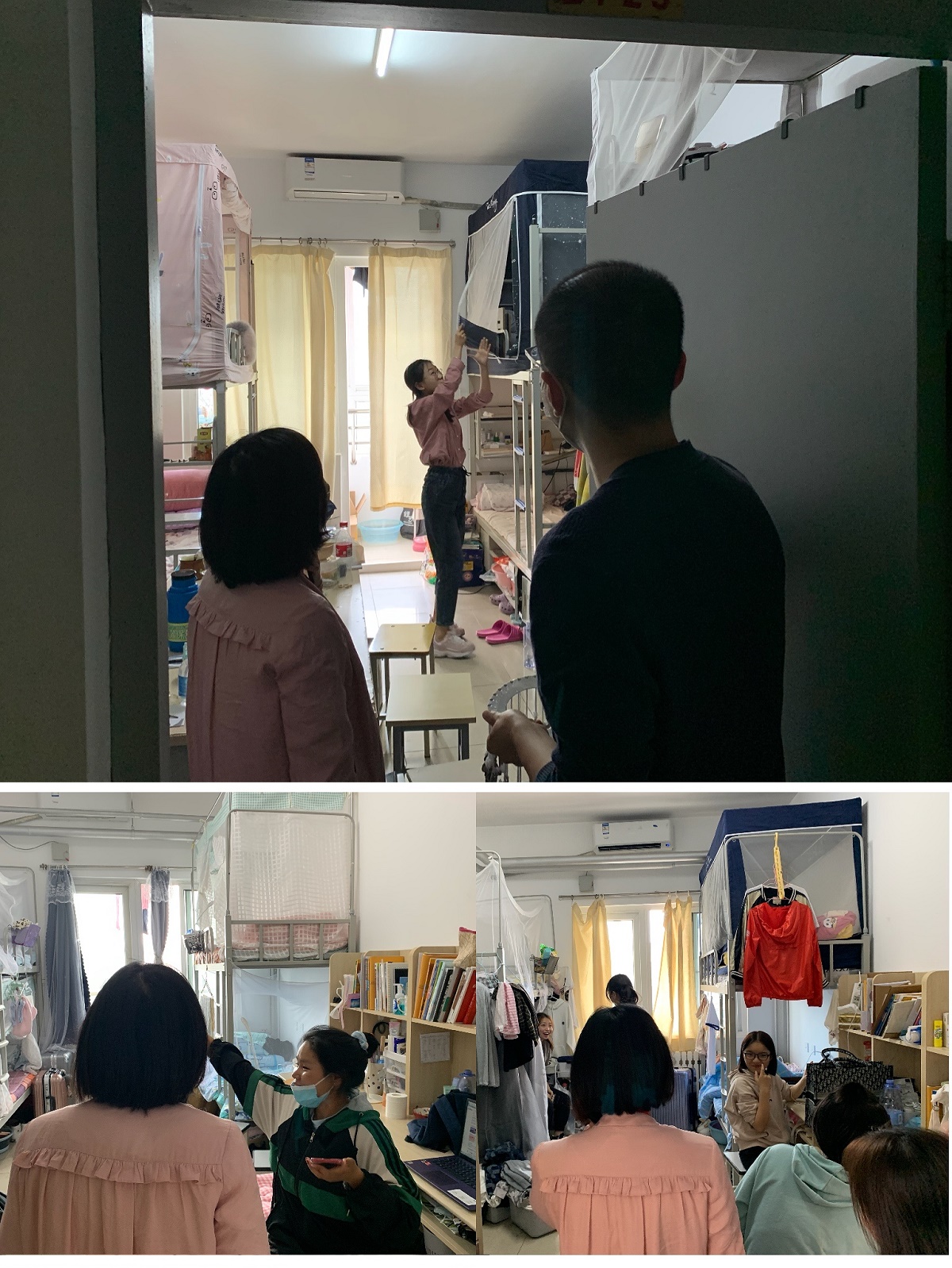 各年级辅导员分别前往悦斋A区、慧斋及馨斋等宿舍,与同学们进行交流,同时对全院学生宿舍卫生、安全用电等情况进行了检查,提醒同学们假期出行注意防疫安全,非必要不出校。学院希望同学们能度过一个安全愉快的国庆中秋双节。