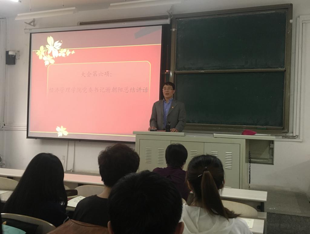 最后,谢朝阳老师进行了总结讲话。他希望大家可以规划好自己的人生格局,身体力行做到三个“不能”:其一,不能不立德修身;其二,不能无追求;其三,不能不勤奋。谢老师指出,国家正处在高速发展阶段,国家的未来需要大家来建设,作为新时代的年轻人,大家应知行合一,争做阳光向上、勤奋创新、敬业乐群、善于表达的经管人。