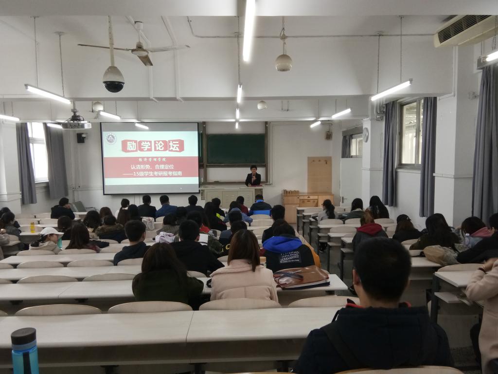 通过本次考研指导,15级考研学生对报考院校的选择有了更深入的了解,对自身定位的判断更加准确,对当前的考研形势也有了新的认识,为接下来的考研复习奠定了良好基础。