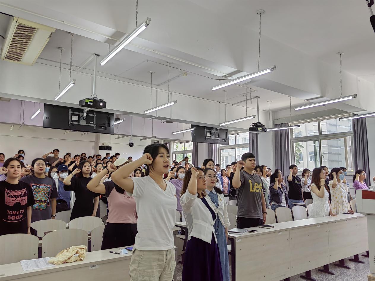最后,毕业生党员代表冯慧颖领誓,与会全体党员重温入党誓词,“我志愿加入中国共产党”,铿锵有力的誓言在会场回响。毕业生党员们纷纷表示,将牢记母校嘱托,用实际行动诠释党员的初心使命。