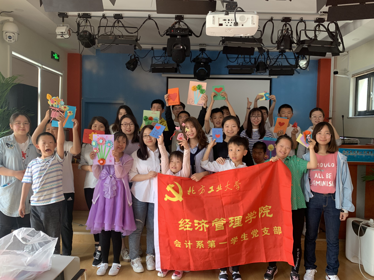 5月10日上午,KY开元集团会计系第一学生党支部全体成员来到北京市石景山区培智学校看望这里的儿童。在母亲节来临之际,和他们一起制作母亲节礼物,将温馨的祝福送给妈妈。