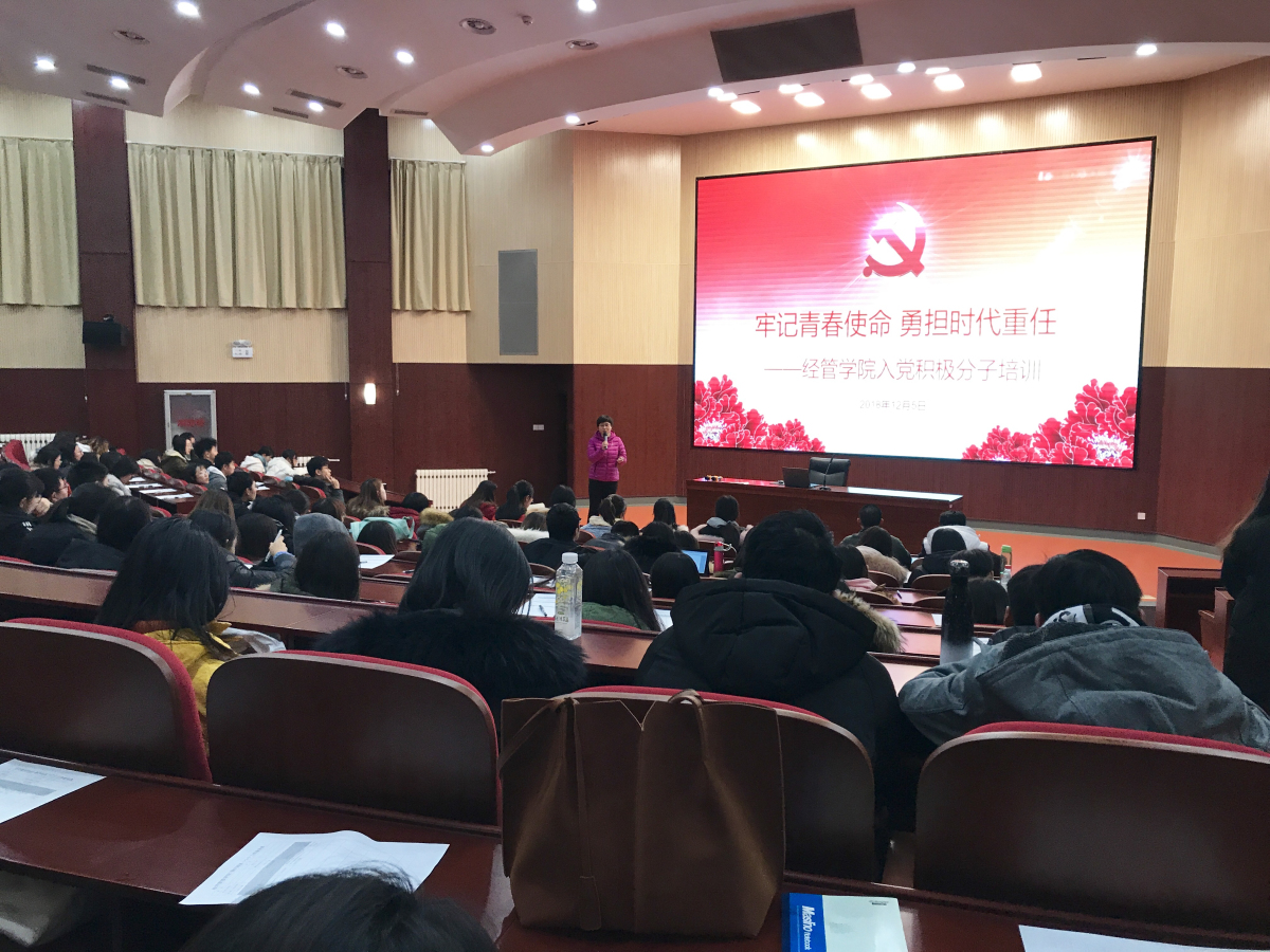 2018年12月5日下午,KY开元集团在文化会堂组织召开了本学期入党积极分子培训会暨经管团校第六课,本学期推选出的积极分子以及团学骨干近200名同学参加了此次培训,学院党委副书记赵洁老师担任此次培训会的主讲人。