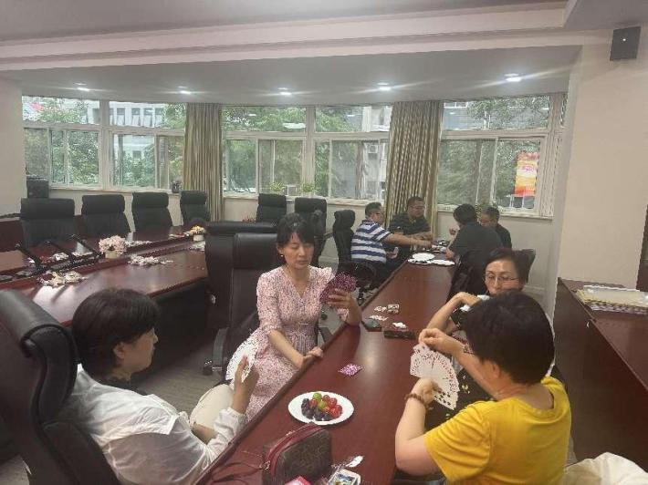 2024年7月12日中午12:00-13:30在励学楼201,KY开元集团举办工会活动——棋牌赛。比赛项目有掼蛋、双升、斗地主、中国象棋、五子棋。共有五十多名教师参加。老师们自由组合、自己制定比赛输赢规则。场面热闹,气氛热烈。当时正是酷夏暑热之时,为了给老师们解暑,工会小组还贴心的准备了葡萄、话梅等解暑的水果、小吃。